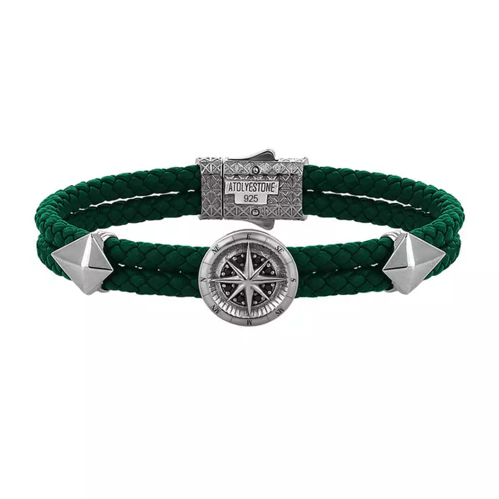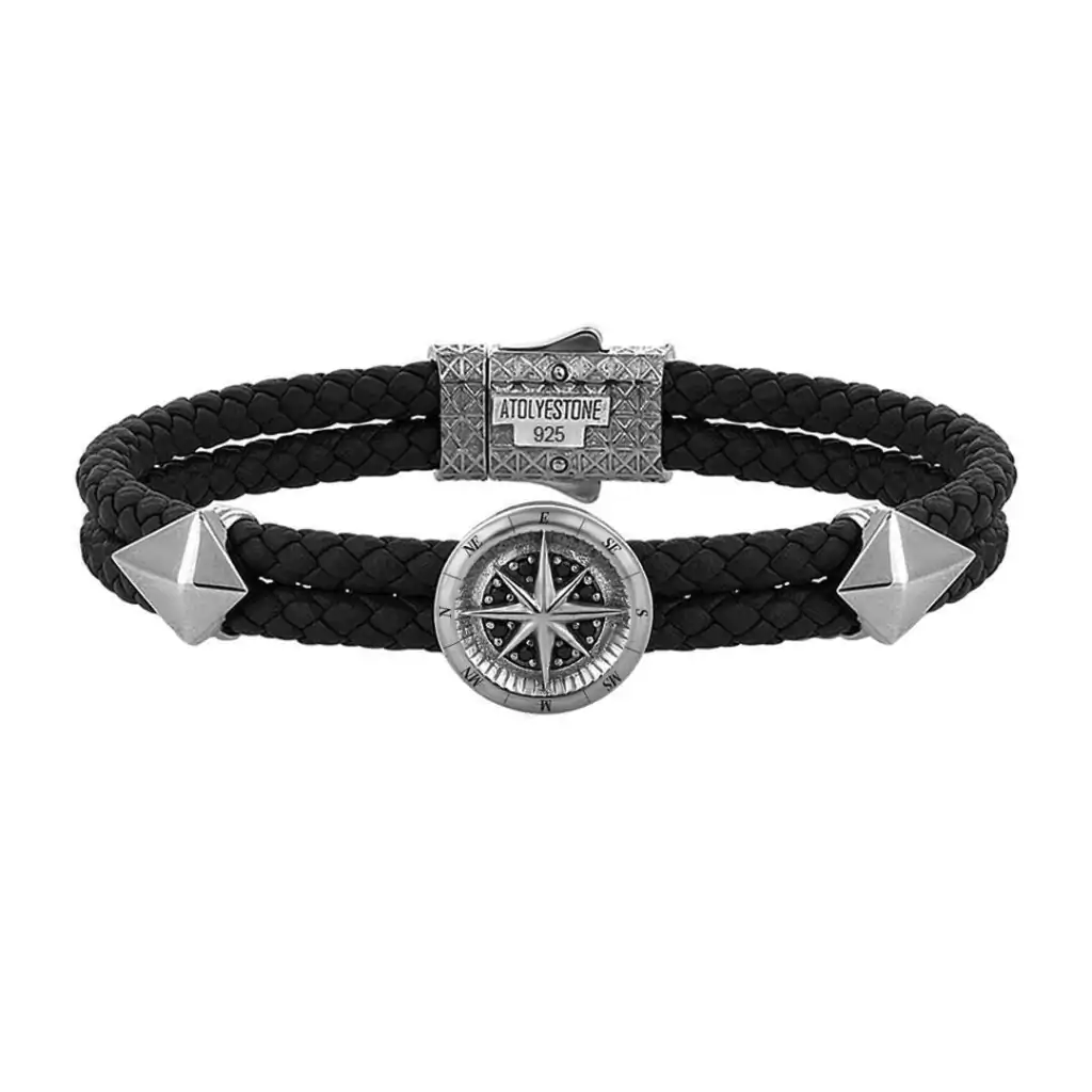 A pulseira de couro Compass adiciona uma distinção significativa ao seu pulso. Esta peça minimalista envolve seu pulso elegantemente com linhas duplas. Feito à mão com o melhor couro trançado e finalizado com prata maciça 925, gravada com a prestigiada assinatura de Atolyestone e adornada com uma bússola icônica.