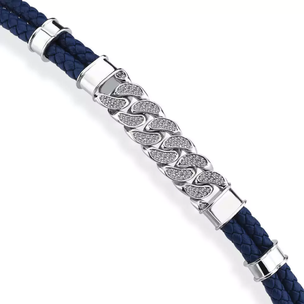 Pulseira de couro com elos cubanos Atolyestone
